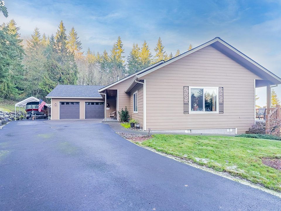 Escape to serenity with this custom 3BR/2BA single-level home tucked away at the end of a long driveway. Meticulously maintained, it boasts wood floors, open great room for conversations, and new windows that flood the space with natural light, showcasing the interior's timeless charm. Step onto the deck and be captivated by breathtaking mountain and river views, creating a perfect backdrop for relaxation or entertaining. Practicality meets adventure with designated trailer/boat parking, catering to your outdoor pursuits. Set on 1.59 acres, the property features a large, usable yard, ideal for gatherings, play, or your green thumb aspirations. Treelined space enhances the privacy and tranquility of your surroundings. This residence is not just a home; it's an invitation to a lifestyle where modern comfort meets the beauty of nature. Secluded yet accessible, meticulously crafted yet welcoming, this property offers a perfect balance for those seeking a retreat that harmonizes with the great outdoors. Welcome home to your private sanctuary.