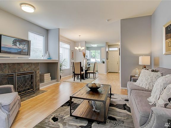 Amazing town home with open floor plan. Sought after 2 bed, 1.5 bath end unit w/updates galore. Stunning shaker cabinets, quartz counters, SS appliances all lined w/a glass backsplash compliment the light & bright kitchen. New paint pops throughout w/new doors, trims, carpet, new lighting & faucets. Spacious bedrooms with abundance closet space. Laundry closet ideally located upstairs. Private patio, carport, and Large storage. A commuters dream, easy access to I-5, 405, SR 525 & Transit Center.