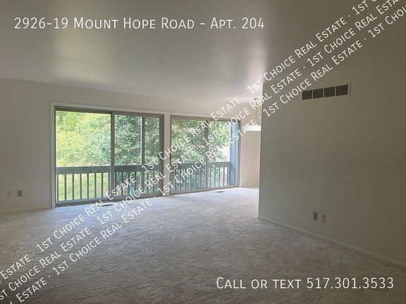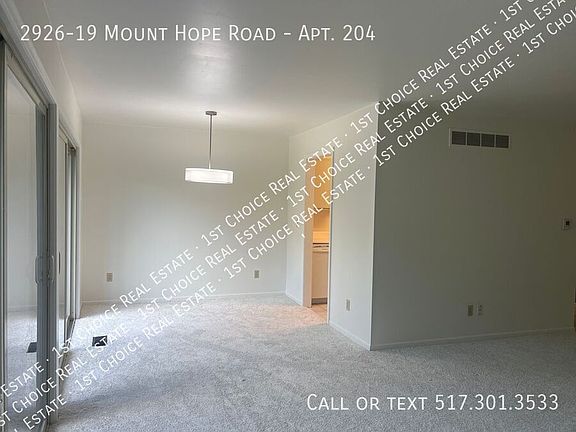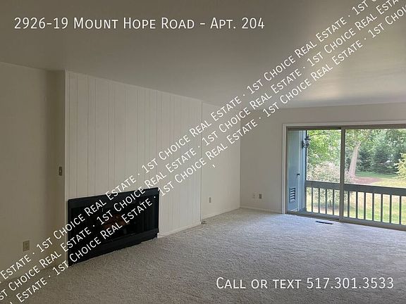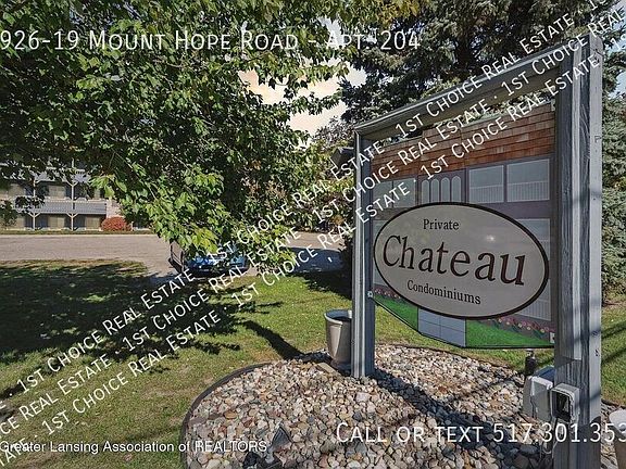 Welcome to The Chateau Condominiums in Okemos, Michigan. Unit #204 is a well maintained, 2-bedroom 2-bath condo. This is a second floor unit with a beautiful view. You will enter into a large foyer. The spacious living room has a gas fireplace and two sliding glass doors that open to the balcony. A separate dining area is open to the living room, but right off the kitchen as well. The galley style kitchen is equipped with a range, oven, refrigerator & dishwasher. Down the hall you will find the first full bath and first bedroom. The master bedroom is in the back corner and has an abundance of natural light as well as view of the beautiful back yard. The master bedroom has 3 closets and an en-suite bathroom with stand-up shower. Neutral wall colors and carpeting throughout. Fresh paint, new carpet & updated light fixtures in September 2025. A carport with 1 parking space is reserved for this unit. Additional uncovered parking available. There is a shared laundry room in the building. Tenant is responsible for the electric & gas. Water, sewer, trash, lawn & snow are all included in the rent. No pets allowed. No smoking allowed. $40 non-refundable screening fee per applicant over the age of 18. Credit check will be ran. Security deposit will be 1.0-1.5 times rent depending on application score. Minimum credit score (VantageScore 3.0) of 620 required. 12-month lease required. Income requirement - gross monthly income at least 3x the rent. NOTICE TO ALL POTENTIAL APPLICANTS: All applicants are required to complete the pet screening process, through a third party vendor - Pet Screening. The screening process is required for all applicants, regardless of whether or not applicant has an animal/pet. Please visit this link to complete your Pet Screening profile, after you have applied to rent a property. https 1stchoicerealestate. Central Air Gas Fireplace