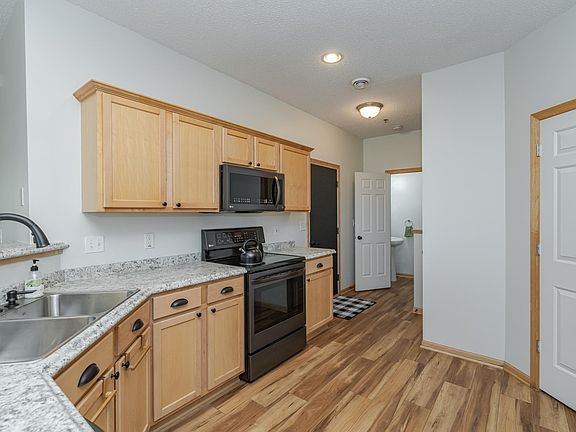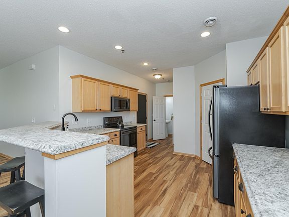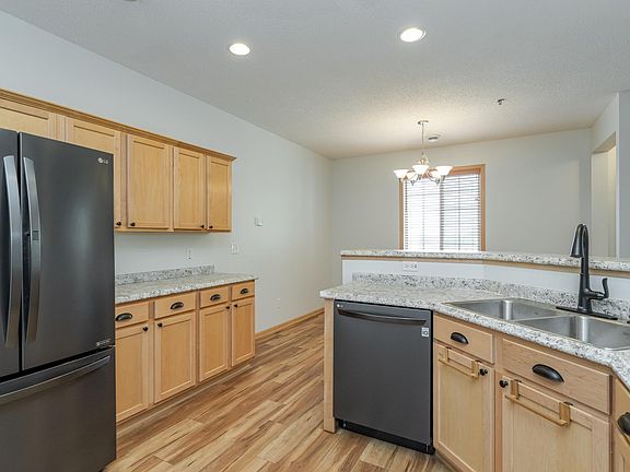 Don't miss this immaculate move-in ready end unit two-story townhome with private side access. Besides all new elegant luxury vinyl planking floors throughout, it offers lots of natural light and boasts an open concept throughout the main floor. The large kitchen features newer black stainless appliances, updated counters with convenient counter seating, and a walk-in pantry. A nice-sized dining area with a large window, a spacious living room with a corner gas fireplace, and a convenient guest half-bath. The upper level has another living area, the master bedroom has a nice-sized walk-in closet, there is another nice-sized bedroom, and a full bath with a tub/shower, large vanity, and two closets, and just steps from the bedrooms is the finished laundry room. Enjoy the private patio and the two-stall garage. Upgrades include new luxury vinyl planking throughout in 2019; black stainless appliances, furnace, A/C, water heater, and water softener are all new in the past five years.