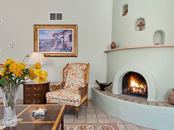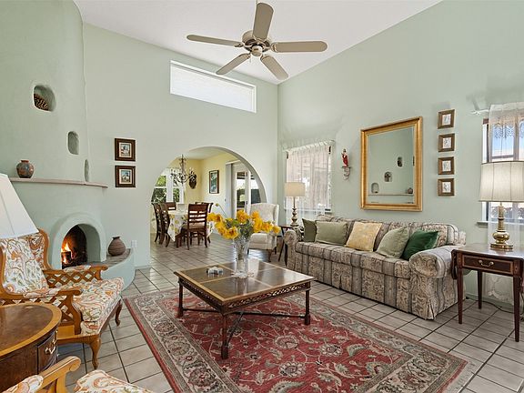 Charming home with two bedrooms and two bathrooms, plus a bonus room off the main living area that could be used as a den or office. Formal dining area adjacent to the kitchen that leads to the spacious outdoor area with covered portal, patio space and the backyard area which overlooks the Las Estancias Park. The primary bedroom is spacious and the second bedroom is at the opposite side of the hall. An oversized garage includes built-in cabinetry for storage and an additional freezer that conveys with the home. Enjoy outdoor entertaining or quiet evenings in the private gated courtyard. A perfect blend of comfort, functionality, and outdoor living!