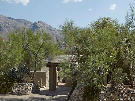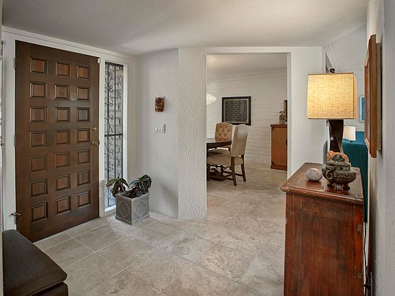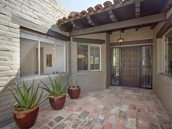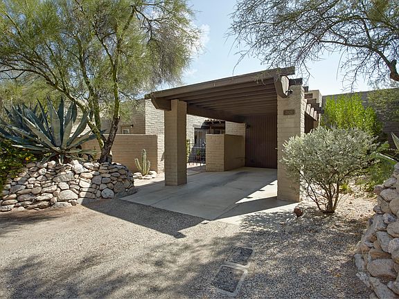Location, architecture & high design meet. Tucked away in a quiet desert oasis, yet within walking distance to La Encantada & restaurants, Posada Real townhomes rarely come on the market. Designed by mid-century architect Juan Worner Baz, the creator of St. Philips Plaza and other Tucson icons, this property exudes authenticity. The interior has been renovated with a thoughtful eye. European cabinetry is complemented by Caesarstone counters in the kitchen and baths, sleek designer fixtures, Bosch and Liebherr appliances. Tumbled travertine tile floors are found throughout. This property backs up to lush green space with Catalina Mountain views. Only a few steps to the lovely community pool. Less than 3 miles to ''The Loop'' multi-use path or excellent hiking trails. An absolute gem!