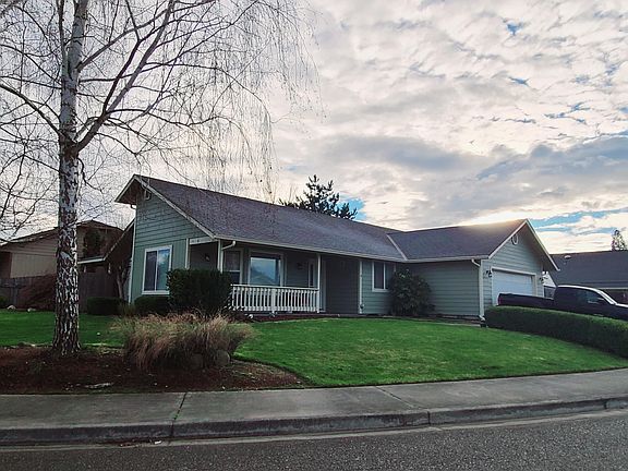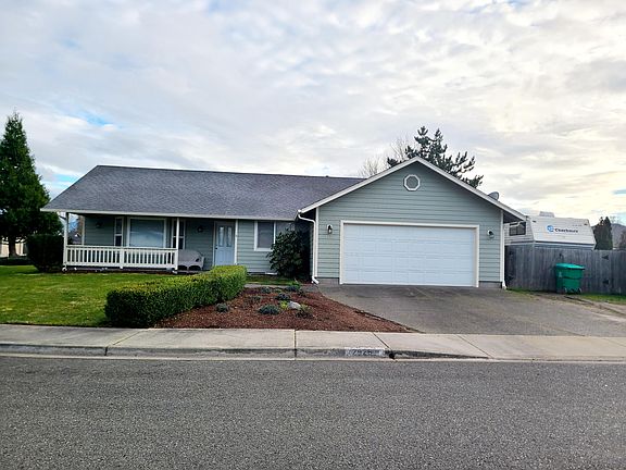 This beautiful home is on the bend of the road and has been well cared for with Love. It's updated with stainless steel appliances, fridge, oven/range, micro, dishwasher, washer & dryer are also included. There's lovely laminate floors (6mo), newer carpet (1 yr), freshly painted inside, painted outside (2yr), vaulted ceilings with ceiling fans, recessed lighting, large dining room, HVAC (2 yr) water heater (3 yr), use the covered patio year round for BBQ's, recently added 4 mo ago. There's also RV parking on the side with clean out and water. The double car garage also has built in cabinets & wall air conditioner. You can Feel safe as the Fire Dept is just around the corner. This is a very lovely home and is waiting for you!!