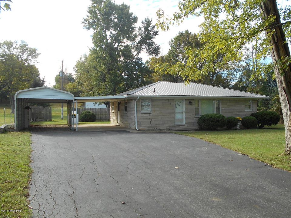 Charming bedford stone home, 3 bedrooms, 1 bath, living room with fireplace, utility room, attached 2 car carport, detached covered patio, 2 outbuildings, large lot, close to town, approx. 15 miles from Rough River Lake and Layfette Golf Course.