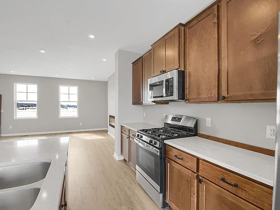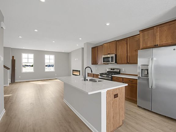 This townhome features 3 bedrooms, 2.5 baths, a 2-car garage, and 2,268 square feet of comfortable living space. Stepping through the front door there is a staircase that takes you to the main level. The main level is open-concept with the dining room, kitchen, family room, half bathroom, and laundry room. All kitchen appliances are a part of the GE® stainless steel collection. There is a deck off the dining room as well as a sizable pantry for your convenience. The laundry room is conveniently located off the dining room as well and includes a washer and dryer. Steps from the kitchen you will find the family room anchored by a modern electric fireplace. The bedrooms and bathrooms await at the top of the stairs. The owner’s suite is a significant size for your private oasis with an en-suite bathroom and a walk-in closet. Transform the lower-level rec room into a media room or home office. Conveniently located to shopping, dining, and major highways for a quick commute!