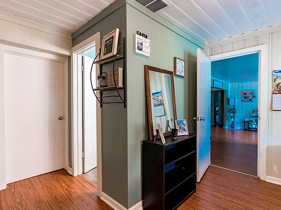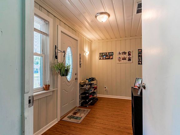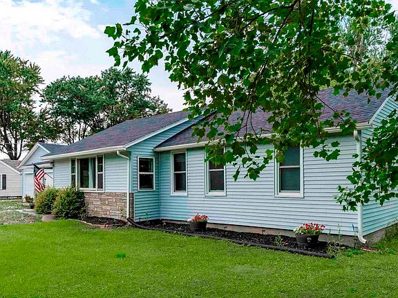 Schedule your visit to this adorable remodeled Ranch on nearly a 1/2 acre lot. Pull into the horseshoe drive and head through the covered front porch into a private foyer which offers unique access to both the Great Room & Mud Room. The Homes large Living Area, Eat-in Kitchen with matching set of appliances, 3 Bedrooms, 1 and a half remodeled Baths, private dual entry Foyer, and large Mud Room are ALL lined with updated laminate & vinyl flooring, found under a Nearly NEW Roof, and are wrapped within NEW siding & many NEW windows [all 4yrs]. The spacious 2 car Garage features 2 newer doors & door openers and offers enough space to store your toys or even a Home Gym! Head out back to enjoy the large backyard, shade of the trees, firepit area, and Brand NEW oversized concrete patio. Space & Privacy abounds on this large lot set on a quiet street.
