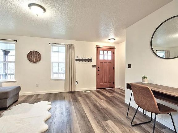 This light, bright traditional home is outfitted with three bedrooms, two and a half baths, a fireplace, a work space, and a ping pong table. Freshly remodeled and update home in a quiet neighborhood near Crater Elementary School. This is a full furnished home with a large back yard and a ping pong table to round out the fun. No Smokers.