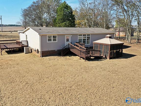 Updated, ten-year-old home with new HVAC on over an acre of land. All new interior and exterior paint/all new flooring. Gazebo recently re-stained. Kitchen with real hardwood cabinets, island, solid surface counters and oversized built-in fridge. Primary suite with walk-in closet. Primary bath with two vanities and walk-in tile shower. Located less than 5 minutes to Huntsville International Airport.