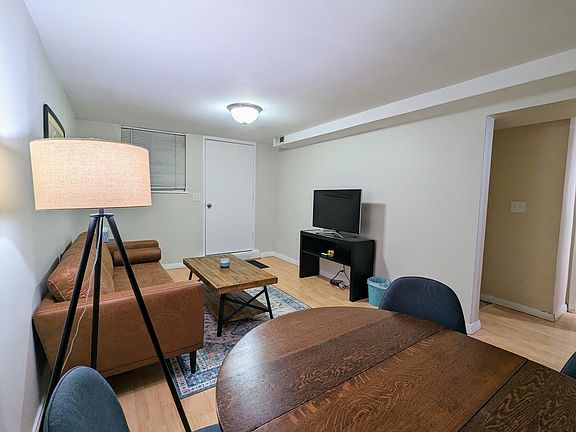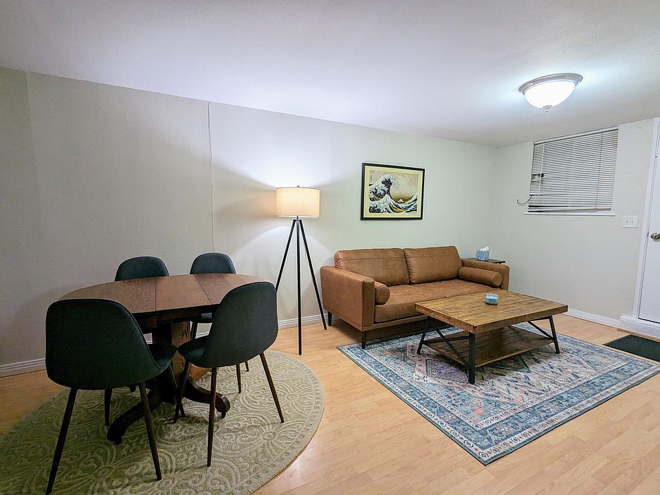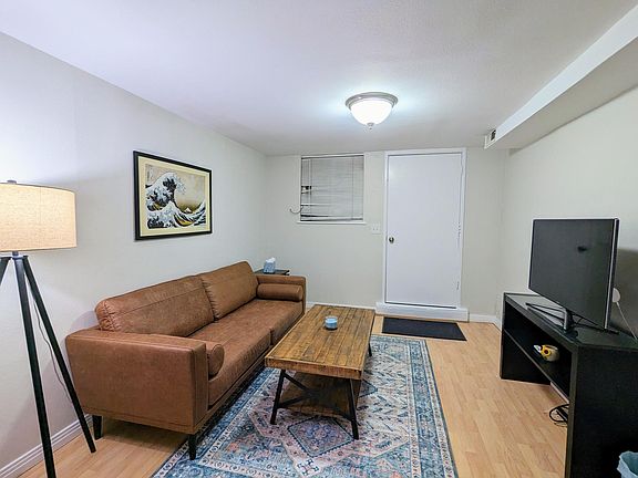 Location, location, location. New carpet in bedroom and freshly painted. Large shared yard with (some) city views. Half a mile north of the Broncos Stadium, three quarters of a mile from Meow Wolf. Bakery and coffee shop less than a quarter mile away. Brewery with daily food trucks less than a tenth of a mile away. Less than a 5 minute walk to Jefferson Park and only a little over a mile away from the REI Denver flagship store and Confluence Park. Children's Museum and Aquarium about a mile away. Easy access to I-25. Basement unit with a shared laundry area. I live in the upstairs with my partner and our two young children. Unfurnished, one year lease - available immediately. Option for fully furnished (+$200/month), month to month option also available (+$200/month). Monthly rent includes all utilities. Uncovered parking at front door. Tenant may use up to two of the three spots. Guests may use the third spot if parked for less than 24 hours. No smoking any substances of any kind inside the property. No burning of any substances of any kind inside the property. Candles in glass jars are the only exception. Smoking outside the house / in the yard is allowed. No pets allowed, only exceptions being a small fish tank or small tank for lizard / gerbil / similar sized creatures.