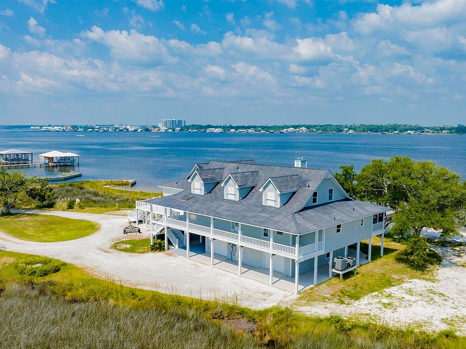 Extraordinary Location! You've never seen anything like this on Ono Island! This 6.6 acre property in the OnoMar subdivision has 319' of dock space for your yacht, boats, jet ski's, etc. The boat house has a 10,000 pound lift, as well as power and water at the slip. OnoMar owners have a fractional ownership of a private marina and beach area, but this property has it's OWN private beach! You will enjoy 572' directly on Bayou St. John, which gives you absolutely stunning views no matter which way you look. This 7068 square foot home has 5 bedrooms and 5.5 baths, plus a bunk room that is 35 x 60 feet. This home is all about family coming together to enjoy everything our area has to offer. It's spacious and private, yet conveniently located and close to dining and the Gulf. Call to schedule your appointment to see this beautiful property today! Listing Agent to be present on all Showing Appointments.