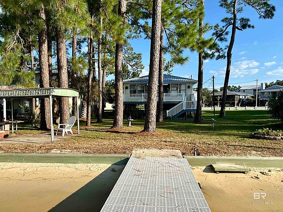 This waterfront cottage in Bear Point has a spacious deck overlooking the water and a new composite pier. The Bear Point community is known for its golf cart-friendly streets, beautiful sunsets, and coastal lifestyle. You will enjoy your own pier, bulkhead, and sandy beach area out front. This bayfront retreat has an open concept floorpan and spacious sunroom to enjoy the views. The metal roof and vinyl siding are low maintenance and provide peace of mind with their longevity. In addition to the oversized living room, there are two spacious bedrooms and a full bathroom. The downstairs storage rooms both offer plenty of space for your water toys and outdoor gear - plus a half bathroom. The location is ideal with a nearby marina and restaurant with Tiki Bar and a full calendar of events. Optional membership in the Bear Point Civic Association provides access to a boat launch and waterfront park. Don’t miss this opportunity to own a serene piece of paradise on the water in Orange Beach! Buyer to verify all information during due diligence.