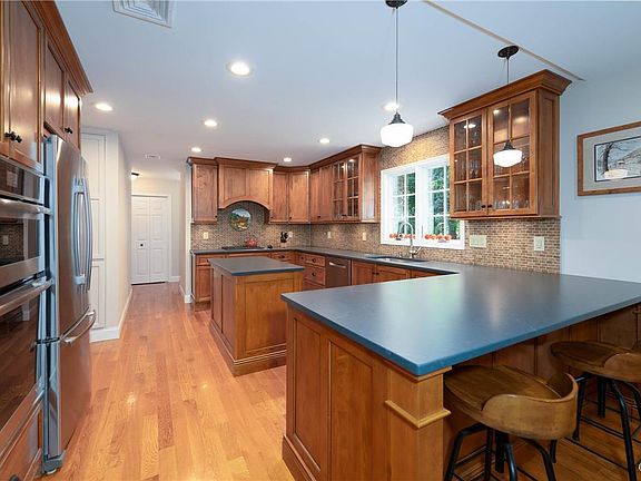 Welcome to your dream home! This beautifully updated 4 BR, 3.5 BA ranch home offers a blend of modern comfort and classic charm on a meticulously manicured flat lot. The custom upscale kitchen features a spacious center island, perfect for culinary enthusiasts. Enjoy the serene, mature tree-lined neighborhood and convenient proximity to local amenities. The lower level is fully finished and complete with an expanded office area and multipurpose room for workout, movies or playroom. Recent enhancements include a new heat pump, upgraded insulation, energy-efficient LED lighting throughout, a new roof with updated downspouts, and Leaf Guard gutters. The private backyard boasts a patio with an awning, ideal for relaxation and entertaining. With a detached 2-car garage and an additional attached 2-car garage, there's ample space for all your needs. This home is designed to be economical to run while offering a delightful living experience. Come see how this home can be the perfect fit for you and your family!