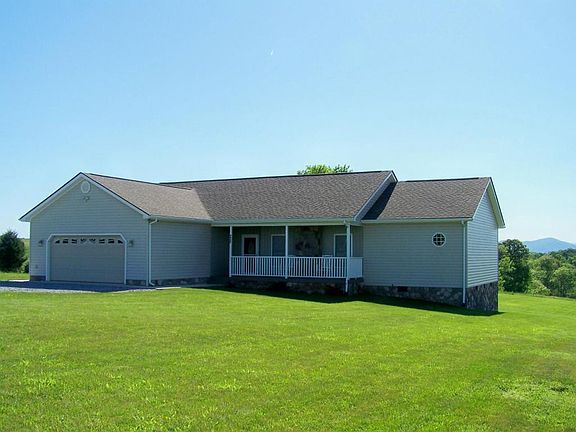 Spacious one-level, split-bedroom home in a peaceful country setting w/beautiful views of rolling pasture & mountains! Features inc: open great room w/vaulted ceiling, HW floors, & fireplace; private MBR w/large walk-in closet; roomy kitchen w/center island & built-in desk; nice screened porch & deck. Large 2-car garage & stand-up crawl space offer ample storage. Convenient to lake & town!