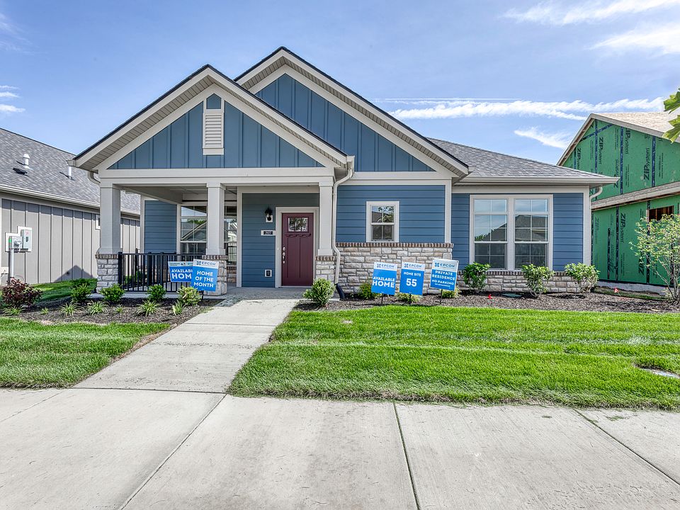 Welcome to a lifestyle of luxury and convenience crafted by Epcon Communities! Nestled in the prestigious Courtyards of Carmel, this stunning residence offers the perfect blend of low-maintenance living and modern comfort- 2 bed/2 bath, office, 2.5 car garage, zero step ranch design - Ready Now! Our Celebration Series homes are a one of kind opportunity accentuating front porch living, rear load garages and a truly private outdoor oasis. This home is one of a few opportunities left! The Courtyards of Carmel is a serene escape, ideally located just minutes away from Downtown Carmel, The Monon Trail, Hagan Burke Trail and easy access to Keystone and I465. Enjoy resort style, low maintenance living- no more yardwork or snow shoveling- enjoy community amenities including clubhouse, fitness center, pool, pickleball, bocce ball, community garden and more! Our Clay Ranch design boasts generous living spaces including 2 beds/2 baths, office, private courtyard, open, yet defined living spaces with the center of the home featuring a chef's delight kitchen overlooking the private courtyard. Epcon's signature private courtyard, viewable from all major areas of the home, allows for an indoor/outdoor lifestyle. Luxury finishes throughout including our deluxe kitchen featuring GE appliances, stylish cabinetry, quartz countertops, walk in pantry, open to dining and a light filled view to the private courtyard. Retreat to your own private oasis featuring his and her closets, a lavish ensuite bath featuring a zero entry shower, upgraded tile throughout, his and her sinks. Experience the Epcon Difference with not only the private courtyard, luxury finishes and light filled home- but enjoy the livability of your home now and years to come with wider halls and doors, zero steps into the home, zero step owner's shower, extra framing for grab bars, handheld shower and more. Discover the unparalleled luxury and convenience of Courtyards or Carmel by Epcon Communities. Contact us t