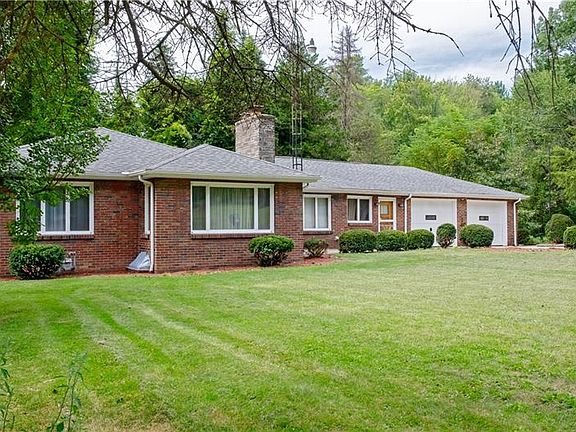 This freshly painted inside and out spacious solid brick home is located on a beautiful corner lot in the Neshannock School District. Enter into a large living room with a stone fireplace and plenty of warm sunlight. Three bedrooms and two full baths all located on the main floor. Main floor also features hardwood floors. An awesome large eat-in- kitchen that leads out to the back covered porch and family room that is great for entertaining. Entertain in a large game room with a full bath on the lower level. Lower level has a large area with build in cabinets that could be an additional kitchen or a great craft area that leads out to the backyard. The lower level also features a large laundry room with an additional storage room. There is plenty of extra storage space located in the over sized attached garage plus a large barn shed outside. Enjoy the outdoors on beautiful treed lot.