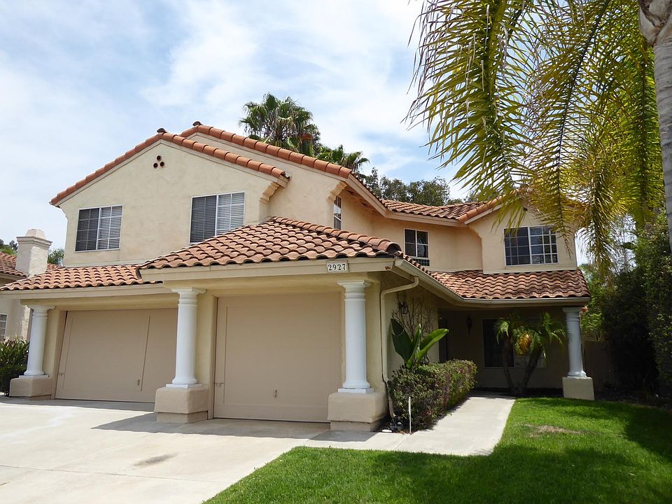 Great Home in La Costa 2927 Sombrosa St, Carlsbad, CA 92009. Great detached home in the Santa Fe Ridge community! This awesome family friendly neighborhood has two parks and hiking trails just steps from this home. Kitchen appliances include a stainless steel refrigerator, electric stove top, oven, microwave, and dishwasher. Giant master bedroom with good closet space and a newly renovated bathroom. Lots of tall palm trees in front yard and a private front entrance. Attached 3-car garage with tons of room and lots of storage space. Nice combination of hardwood/tile floors in living areas and brand new carpet in the bedrooms. Tall vaulted ceilings and big windows let in tons of natural light. Newly painted interior and ceiling fans in all the bedrooms. Cozy gas fireplace in the living room. Washer/Dryer hookups in garage. Big yard in front and back of home. Gardener included. Conveniently located kitchen with tons of storage cabinets and a huge pantry. Available December 7th. Pets will be considered! Tenant pays utilities
