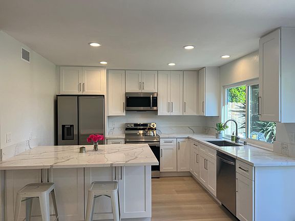 Welcome to this two story townhouse with 3 bedrooms and 2.5 bathrooms in Tanglewood Carlsbad! The entire interior of the property has been meticulously upgraded. Newer paint for all walls and ceilings, luxury vinyl planks, new doors, recessed lights, and windows and sliding doors. Kitchen has been remodeled with brand white shaker cabinetry, quartz counter tops, and stainless steel appliances. From kitchen you can access to your private yard which leads to a 2 car garage with laundry hookups. Upstairs with plenty of storage in the hallway. Master bedroom with a spacious closet, bathroom with beautiful large format tile shower walls, sink vanity, tile flooring, and light fixtures. Guest bathroom with tub/shower combo enclosure, sink vanity and tile flooring. This home offers open, bright, and spacious floor plan for ultimate comfort. Community amenities include 2 swimming pools, tennis courts, and lots of green open spaces. Property is located just minutes to shopping centers, malls, freeway, restaurants, schools, and more! Lease includes trash fees. Tenants are responsible for all other utilities.