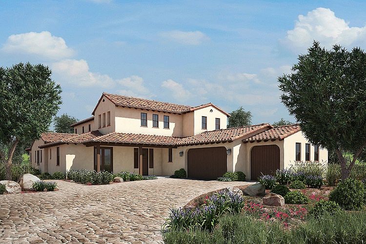 New Sem-Custom 4,200 square foot view home with 4 bedroom suites, 4 ½ baths plus a media loft and a downstairs Flex Room which can function as a Den or Office. Open floor plan maximizes views, indoor outdoor relationships and a convenient lifestyle. Downstairs master suite located to maximize views and privacy from secondary bedroom areas. Many alternate room choices available, including the creation of a living area for both a downstairs and upstairs bedroom suite for maximum generational and life style flexibility. Two architectural styles: Canyon Rustic and California Rancho are offered in several color combinations. Exterior features: Decorative concrete driveway and onsite drainage vary by lot location. Decorative concrete porch and loggia slab also standard. Designated Open Space area landscaped per approved Landscape Plan. Sectional wood garage doors with automatic openers, two transmitters, and keyless entry. Old style stucco finish or stone veneer on building walls, varies by elevation style. Concrete tile roofs with varying treatments by style. Sliding doors at selected locations, with easy maintenance vinyl, optional French and/or folding doors available at selected locations. Dual pane low-E Andersen windows, in easy maintenance vinyl with wood stool and apron. Rain gutters and downspouts at primary locations. Gas stub for BBQ at rear loggia. Exterior hose bibs at selected locations. Weatherproof exterior electric outlets at selected locations and dual ceiling fans at rear loggia. Prepped for photo voltaic installation. Interior features: Gas fireplaces in Great Room, complete with hearth and mantle as well as lighter and log sets. Garages finished with drywall, paint, and convenient electrical outlets. Decorative rocker switches as well as pre-wired ceiling outlets for optional ceiling fans in key rooms. Rounded drywall corners at select interior locations. R-19 insulation in exterior walls, R-30 in ceilings, and R-13 in key interior walls. Oil rubbed bronze finish interior and exterior door hardware. Integrated multi-media wiring system with Category 5 data and phone wiring and RG-6 Coaxial Cable with multi-function outlets in key locations. Interior laundry room with gas (optional 220V) dryer hook-ups, laundry sink, kitchen quality cabinets, and granite countertops. 75 gallon water heater with recirculating system. Brushed nickel Kohler bathroom plumbing fixtures throughout. Dual heating and air conditioning systems and night setback thermostats. Solid core interior doors and optional wood ceilings and decorative beams at dining, great room and master bedroom. Stair handrails are wood with wrought iron. Kitchen: Gourmet Sub Zero / Wolf stainless steel appliance package with 48" Wolf range with dual convection ovens and hood, 24 Wolf microwave, Bosch dishwasher, 48" Sub Zero refrigerator, many appliance options available including wine storage units. Dual compartment kitchen sink with Kohler pullout faucet in brushed nickel. Walk-in pantry. Granite counter-tops and backsplash at kitchen counters and island in selected colors. Pre-finished cabinets with concealed self-closing hinges, fixed and adjustable shelves, and fluorescent under cabinet lighting. Large kitchen island with curved bar top for convenient eating and extra under cabinet storage. Master Baths: Generous separate walk-in closets. Separate tiled shower with dry off area and optional exterior door. Over-sized separate toilet enclosure with storage cabinet, prewired for upgraded washlette toilet. Kohler oval spa tub with elongated spout. Separate his and hers vanities with special mirrors as well as mirrored medicine cabinets. Granite counter-tops with splash in selected colors. No HOA's and no CFD/Mello Roos.
