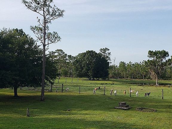 Charming country home on over 6 ACRES located at the end of a quiet cul-de-sac street in Punta Gorda Ranches. Picturesque setting overlooking a pond. This beautiful home with tons of character offers an open and split bedroom with Great Room, separate Dining Room, spacious Kitchen. The large Great Room has a gorgeous tongue in groove cedar cathedral ceiling, cedar tongue in groove wainscoting on walls and diagonal lay porcelain tile floor. The Great Room opens to the Dining Room and the Kitchen. The Dining Room offers a view of the property, cedar tongue in groove wainscoting on the walls and diagonal lay porcelain tile floor. The well appointed Kitchen has beautiful wood cherry cabinets and tons of storage, granite counters, stainless appliances, cedar ceiling, cedar wainscoting and a view of the property. The large Master bedroom suite offers a safe room with office and walk in closet. There is a private bathroom with dual sinks, garden tub, walk in shower, wood vanity and wood storage cabinet. There are two additional good sized bedrooms and the guest bathroom has a walk in shower. Features include high ceilings, cathedral ceilings, impact glass, hurricane shutters, lovely landscaping, spacious room sizes, recently blown in insulation in attic. There is a 40x40 barn/shop, 28x12 shed, 16x13 carport and 25x24 port a port. There are goats on the property and the seller will leave them if the buyer wants (agriculture tax exemption). Upright freezer in garage is negotiable. All tools and cabinets in the shop do not convey as part of the sale but many items are available for purchase. Car lift can stay if the buyer wants it. Flood insurance is not required for this property. This home is in a quiet country setting yet is only minutes from historic downtown Punta Gorda shopping, dining, medical care, waterfront parks, boat ramps, fishing piers, walking and biking paths, art galleries, weekend farmers market, Fishermen's Village.