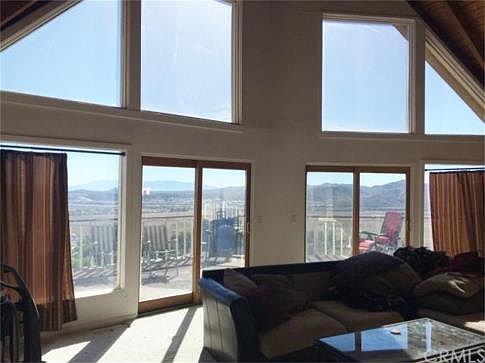 Views, views and more views! This is a cool home! A 180 degree wrap around deck gives you panoramic views! The great room has wood beam vaulted ceilings, along with floor to ceiling windows that make it an exquisite room to be in. The kitchen opens up to the great room and has a breakfast bar. The great room boasts three separate sliders to let you out onto the deck at all points. Downstairs you also have two good sized bedrooms and a full bath. Upstairs is an open loft area, the master bedroom and bathroom. This home sits up on the hills in between Menifee and Canyon Lake, just minutes from both the 15 and 215 freeways. You will enjoy much privacy in this home on just under an acre of land, 30,492 sq. feet, and is fully fenced with a separately fenced dog run. The detached garage is fully insulated and has electricity and cable hook ups already. SUPER LOW TAX RATE and NO HOA! This is a wonderful home, so get it before it is gone!