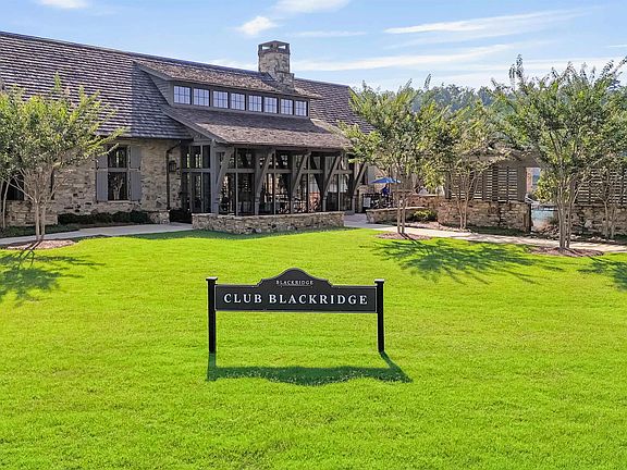 Nestled in Blackridge Cove in the gated lake community of Blackridge, you'll fall in love with this immaculate 5 bedroom, 4.5 bath home. This floorplan is open, with high ceilings, wide hallways, hardwood everywhere, and tons of natural lighting. Notice the elegant and bright finishes throughout. The primary bedroom is located on the main level, as well as a secondary bedroom/full bath with upgraded bookshelves & French doors, plus a large flex room to be used as an office or formal dining. The upstairs has 3 full bedrooms, 2 full baths, along with a large bonus room and upgraded closets. Relax outside under the covered patio with brick fireplace. 2 car attached garage with EV charger. 1 car detached garage with AC and shelving has been turned into a work space. Enjoy the amenities of Blackridge: pool, fitness center, clubhouse, lake, pickleball courts, playground, & amphitheater. Make your appointment today to see this home, as one of this caliber will not last long.