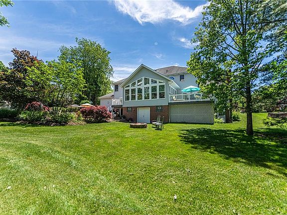 Welcome to some southern charm in this beautiful Charleston inspired home. Nestled on a gorgeous .6 acre treed lot adjacent to 32 acres of park land, the private backyard offers a delightful retreat complete with waterfall, stream and fish pond. Enjoy the sights and sounds of nature on the brick patio or from one the 2 decks overlooking the the lush landscape. The home features 4 bedrooms, 3 1/2 baths and over 4200 sq' of living space. Entering the foyer the formal dining room and living room are to either side. Through the foyer the space opens to the family room with sliders to a deck, fireplace, & built in shelves. The adjoining great room/sunroom (2015) features 13' soaring ceilings and walls of windows & skylights to flood the room with a profusion of natural light. Sliders open to a deck. This whole space is perfect for entertaining as it opens to a large 12' island and beautifully updated (2015) kitchen with maple cabinets, granite counters, sink, ceramic cooktop, wall oven and microwave. There is also a first floor "corner office"! Spacious master bedroom with door to balcony , a lovely bath with jetted tub and a large walk in closet. Walkout lower level offers an additional 1,000 sq' of living space with rec room, office/5th bedroom, bath, bonus room and workshop. Other updates: wood flooring, hard vinyl flooring, carpet, interior/exterior light fixtures, baths, patio, fish pond & ac(2015). Call for your appointment today to see this lovely home.