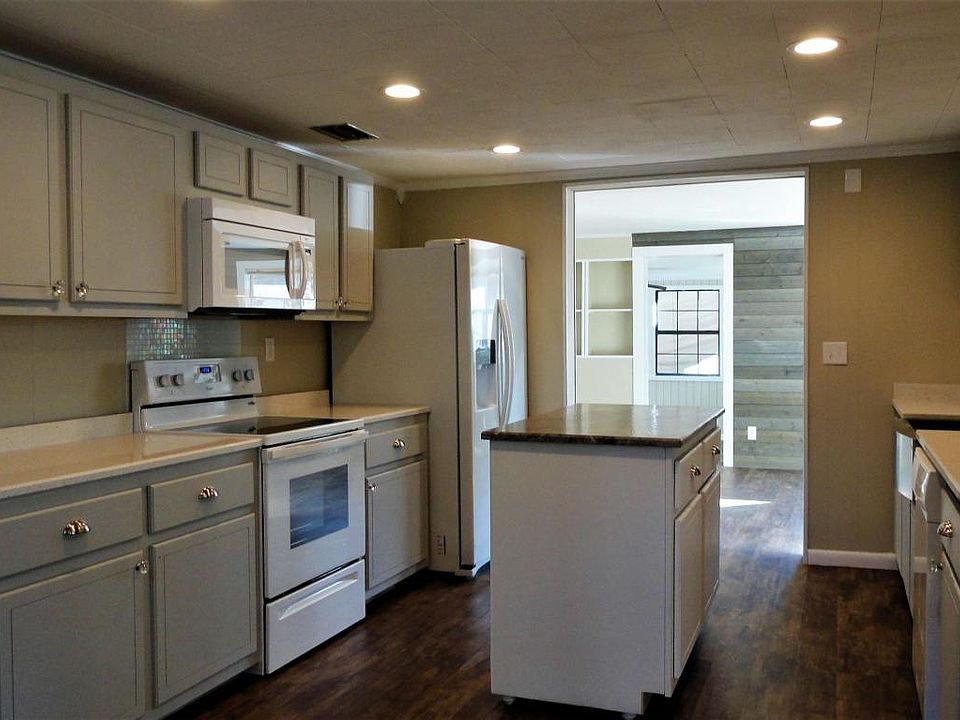 - Interior: Lighting Recessed, Washer/Dryer Hookup, Floor Tile, Split Bedroom, Kitchen Island, Floor Laminate, Window Treatmnt Some, Newly Painted