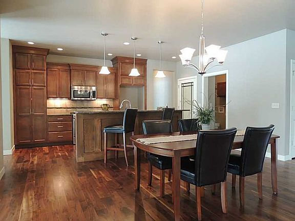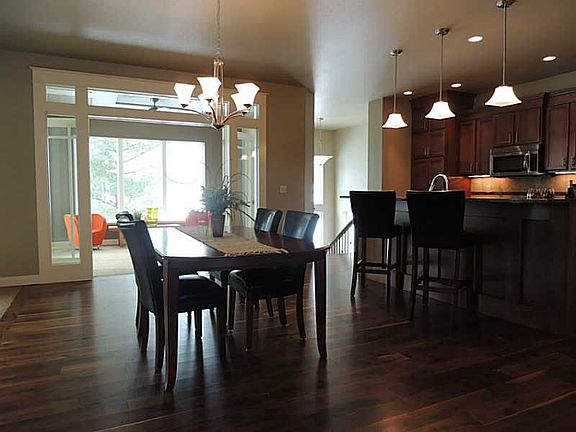 Exquisite new home with contemporary touches. Equipped with all the upgrades & attention to detail you would expect from award-winning First Construction. This open plan features a main level guest suite with walk-in closet & private bathroom. Find tons of windows & daylight, including built-in fireplace in the great room, 4 seasons room, & open staircase with access to lower level & walkout patio. The large kitchen is complete with granite tops, tile backsplash, stainless steel appliances, & pantry.