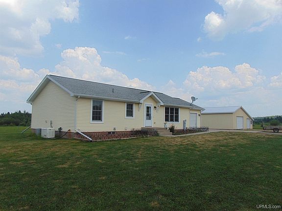 Beautiful setting for this 2BR 2BA home with 16x24 attached garage and a 24x40 detached garage with 12x40 lean-to nestled on 40 beautiful acres in the south end of Houghton County in Duncan Twp. This is a well-cared for home offering lots of privacy in the country in move in condition. The main level features a large modern kitchen/dining area leading to a large living room. There are two bedrooms, a full bath and laundry area that complete the main level. The lower level features a nice 17x20 rec room with a cozy fireplace, a bar and a 1/2 bath. There is a large storage area, and the super clean utility area makes up the lower level. Home is very well insulated. The pole garage has a poured floor, electric and can hold up to four vehicles and plenty more storage in the lean-to. There is a huge front yard, and the back yard has a small chicken coop and garden area. Sit and have your morning coffee from the back deck and listen to all nature has to offer! An elevated deer blind sits just behind the home for the avid hunter! The snowmobile/atv trail is only two miles away and there are thousands of acres of Ottawa National Forest in the area to hunt, fish and explore! If you're in the market for beautiful home in the country, you'll definitely want to check this one out! Call for an appointment today!