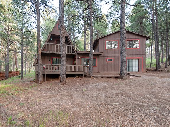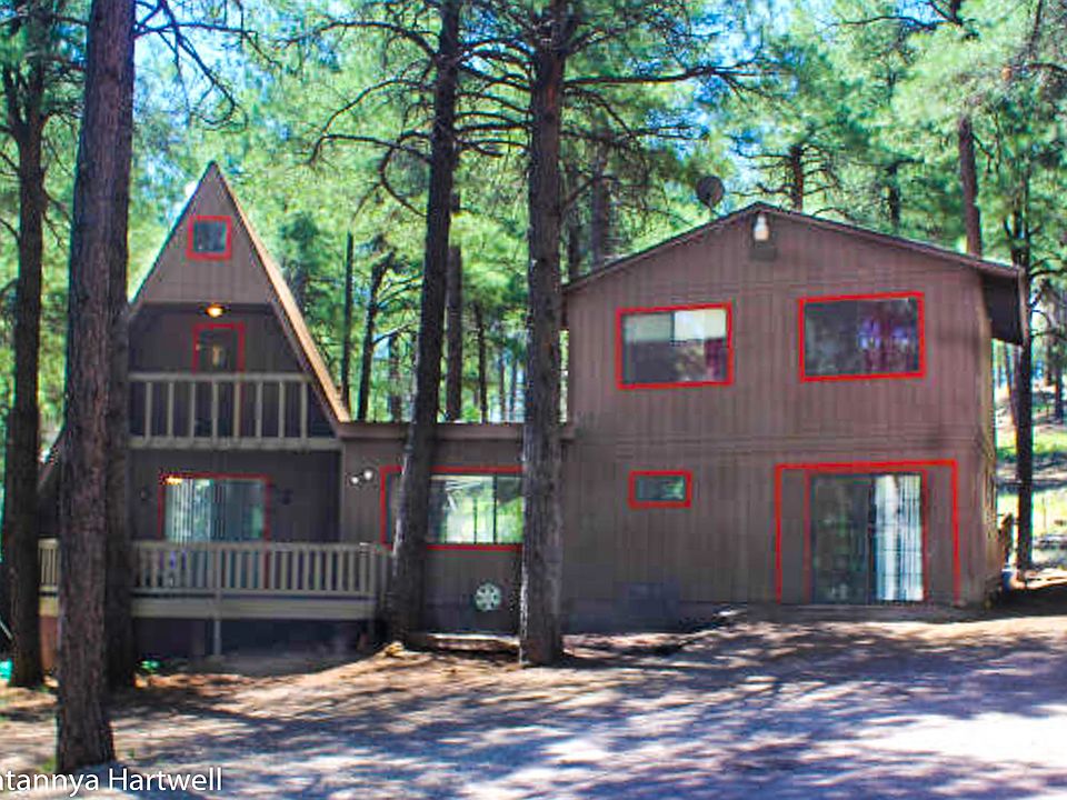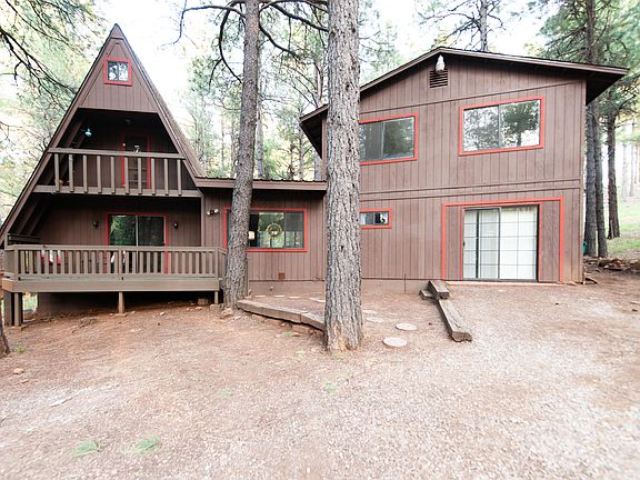 Inches away from forest trails. Heavily treed lot backing forest on a quiet Cul-de-Sac in Kachina Village. Great location for your outdoor entertainment. Many trails including access to pumphouse wash trail. This 4 bedroom has tons of character and forest charm - a spacious, open kitchen floor-plan with updated appliances and a double oven. It also makes a great vacation home or vacation rental. Two separate upstairs give added privacy to the large master bedroom on the cabin-side with a cozy 2 bedrooms upstairs in the A-frame (1 full bath and 3 half-baths). The backyard has plenty of room for outdoor entertaining. Check out the fun tree house in the back!
