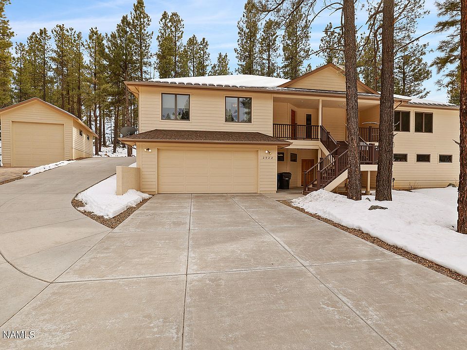 You have to see inside this home to realize what a treasure it is. There are four bedrooms, one of which is currently used as a den (it's that big). There is a huge multi-purpose room on the ground floor, with a bathroom and a workshop/bonus room next to it. In the main living areas there are beautiful engineered wood floors, tile in the kitchen, and carpet in the bedrooms. There is parking for at least four vehicles, with a two-car garage on the ground level, a one car garage on the main level (if you don't want to use the stairs), and a detached RV garage built in 2015. The neighborhood is quiet and beautiful, with large lots, natural environment, and all custom homes. Close to hiking trails, downtown, and the Arizona Snowbowl. CC&Rs can be found at Linwood Heights Homeowners