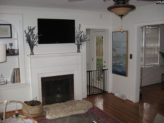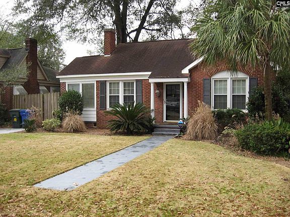 Updated brick traditional style bungalow with curb appeal galore. Brick pavers in front parking area and two car drive way area compliments a landscaped yard with palmeto tree. This three bedroom home has hardwood floors, transoms, updated kitchen with ceramic tile flooring, granite tile backsplash and countertops, double stainless sink, pantry. gas free standing range refrigerator, updated bathroom with whirlpool tub, ceramic tile flooring wall paneling, hall foyer formal living room with a fireplace, bookshelves, formal dining room. sun porch or office with tile flooring, unheated laundry porch, covered 450 SF outdoor entertainment porch with outdoor fireplace, grill and refrigerator & shed, gazebo fence yard more.