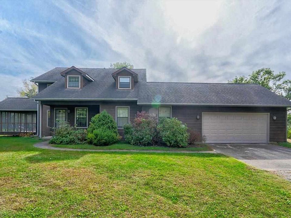 Quaint home nestled within the trees on 1.72 Acres with 3 bedroms & 2 baths upstairs as well as a spacious bedroom & 3/4 bath on the main. Large screened-in porch, apple trees & a 2 stall garage with a loft. One owner is licensed to Sell in the State of Iowa.