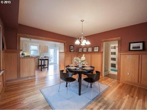 Up and coming location close in SE location just blocks to Division/Clinton neighborhood with light rail stop coming in 2014 and 0.4 miles to downtown! Fresh urban classic in 1912 Bungalow style home boasts unpainted woodwork, reclaimed hardwoods, Schoolhouse Electric light fixtures and open floor plan. Extensive updates throughout include custom Pella Wood Windows, weather sealing with Clean Energy Works and new hi-efficiency 96% gas furnace. Private, fenced backyard has two level deck, raised beds for garden and yard. Gourmet kitchen is open to formal dining room and has stainless appliances, prep island, ample storage and glass door to entertaining deck. Incredible attention to detail inside and out with stacked rock entry walls and front stairs, native and xeriscape plants and peaceful front porch.
