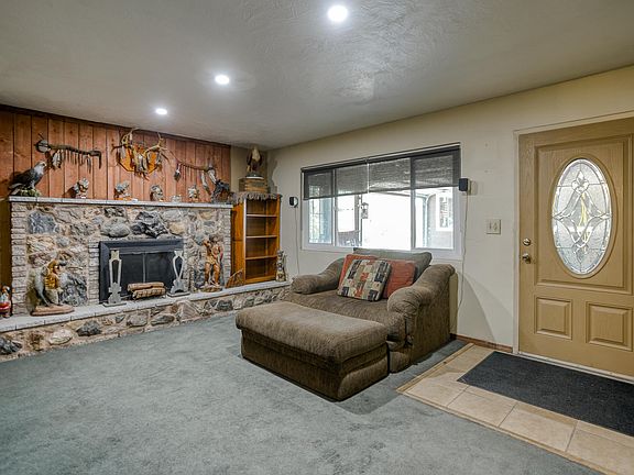 COMFORTABLE 3/2 HOME. CONCRETE BLOCK CONSTRUCTION MAKES THIS HOME FEEL COOL IN THE SUMMER AND WARM IN THE WINTER. STEP THROUGH THE FRONT DOOR & YOUR GREETED BY A BEAUTIFUL WELCOMING FIREPLACE. KITCHEN AND DINING ROOMS ARE IN MIDDLE OF HOME. LARGE WOOD STOVE ON THE OTHER END. UNIQUE CARPORT FEATURE SEEMS TO BE FAVORITE WITH MOST GUESTS FOR JUST HANGING OUT. GARAGE DOOR ON THE FRONT OF CARPORT, BUT BACK IS OPEN AND EXPOSED TO THE REST OF THE BACK YARD. NICE SIZED SHOP, WITH LAUNDRY HOOK UPS ALSO. MORE COVERED PARKING ON THE OTHER END OF THIS PROPERTY BEHIND A ROLLING GATE. THIS HOME SITS ON A 1/3 ACRE LOT, SO THE BACKYARD VERY SPACIOUS, WITH MANY STORAGE OUTBUILDINGS FOR YOUR TOOLS AND RECREATION GEAR. GARDEN IS GROWING AND THEIR ARE MANY TYPES OF FRUIT TREES AS WELL. ABOVE GROUND POOL :)