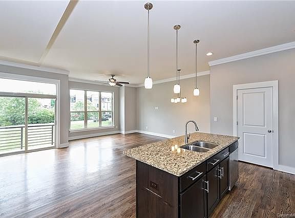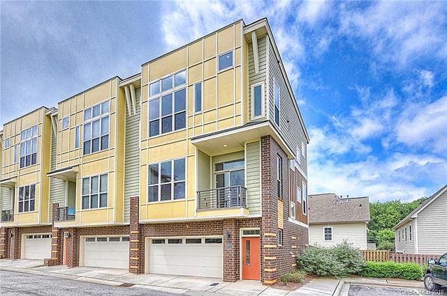 Highly sought after END UNIT located in Noda's popular Steel Gardens community just minutes from uptown Charlotte. Walk to restaurants, coffee shops, breweries, parks, music venues, and the brand new LIGHT RAIL that just opened. This open floor plan features an abundance of natural light, high ceilings, hardwood floors, granite countertops, large kitchen island, subway tile backsplash, and stainless steel appliances. Large master suite has 12 foot ceilings, walk-in closet, and spacious master bath with dual sinks. The balcony off the living area overlooks green space, and a large enclosed private rear patio (with raised garden beds) is perfect for outdoor entertaining. This unit is MOVE IN READY...freshly painted throughout with light grey/neutral color (SW-"Agreeable Grey") and brand new carpet installed in upstairs bedrooms. Kitchen refrigerator and washer/dryer convey. HOA dues include Spectrum cable TV & high speed internet, water, sewer and trash. Location, Location, location!