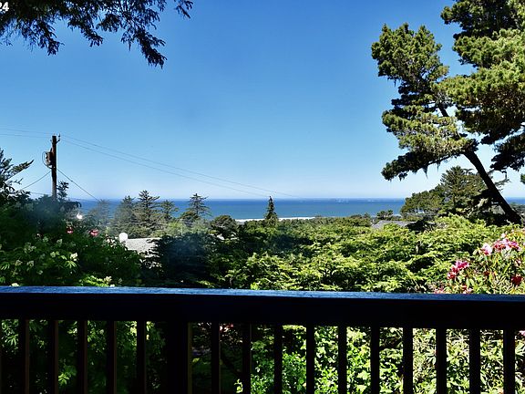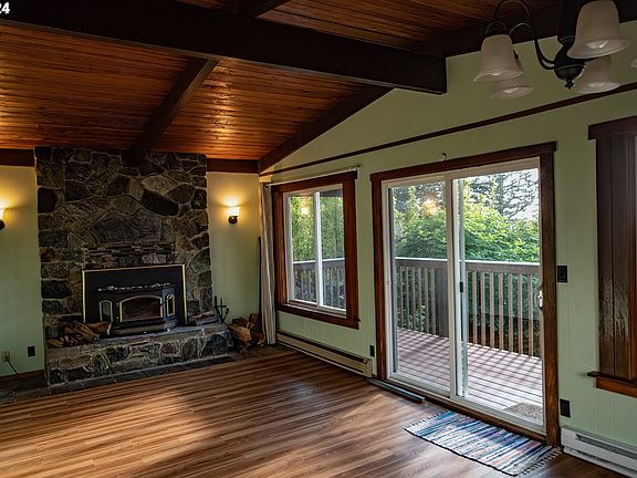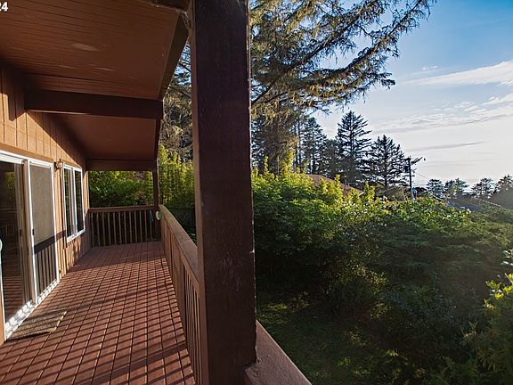 Enjoy whitewater ocean views from the main floor living area and deck of this home nestled at the end of the road. The main floor boasts a bedroom and a full bathroom, along with a living area with a custom stone fireplace perfect for winter nights. Downstairs, discover another bedroom, full bath, and spacious family room. Complete with an attached garage, this home is just minutes away from downtown, the beach, and the Rogue River.