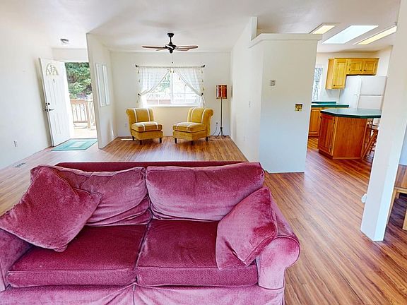 Discover your dream home with this beautifully designed 3-bedroom, 2-bath manufactured home in a welcoming all-ages park! Featuring new luxury vinyl plank floors, vaulted ceilings, and a cozy pellet stove in the living room, this home offers a perfect blend of comfort and style. Enjoy stunning views through the 8' sliding glass doors and ample space for all your furniture. The Owner's Suite boasts double walk-in closets, a soaking tub, step-in shower, and dual sinks. The large kitchen comes with an eat-in dining area, island, skylight, and abundant storage. Guest bedrooms are thoughtfully located on the opposite side of the home for added privacy. There is a bonus room could be formal dining room, cozy office/den or crafting area. Additional highlights include a laundry room with a sink, an oversized 2-car garage, and a large backyard patio perfect for BBQs and sunbathing. The fenced yard is ideal for a small dog. Recent updates include a new roof (2020) and new siding on the back of the house (2022). All appliances are included. Space rent is currently $390/month. Don't miss out-contact us today to make this home yours!