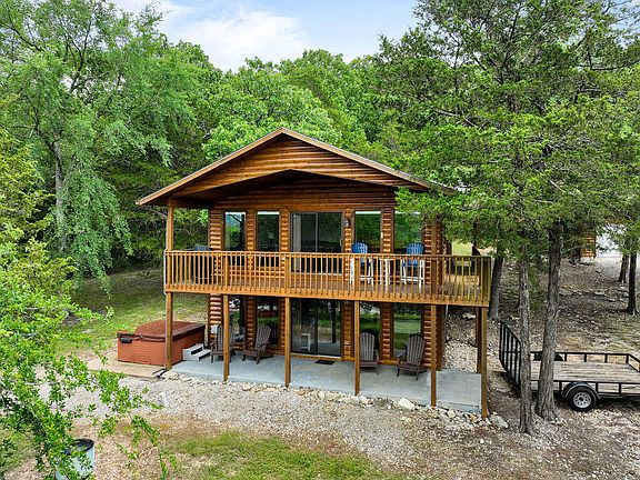 Lakeview home with TWO 10 x 24 boat slips! Spacious lake home with wide-open great room, kitchen and dining area that allows for easy entertaining and family gatherings. This home has two great porch areas for sitting, grilling, relaxing as well as a detached two car garage for storage. The primary bedroom upstairs and secondary bedroom downstairs are ample sized and accommodate multiple sleeping areas. In addition, there is a 3rd sleeping area (non-conforming bedroom) in the basement along with a great room area with gas fireplace for entertaining. Extra unfinished area provides good storage for lake toys. A short ATV or golf cart ride away is two 10 x 24 slips available for additional $$. This home has been recently updated, is super clean and is move in ready!