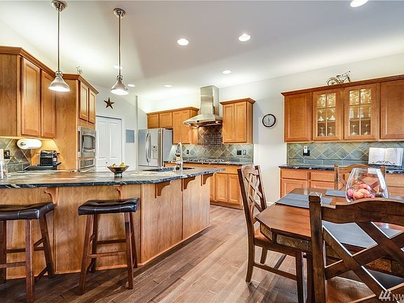 Nicely updated home in desirable Laurelcrest community! Updates include unique, custom countertops with under counter composite sink. Additional cabinetry/countertop with buffet in dining area. Open floorplan ties the Kitchen, Living & Dining room areas for great flow. New solid hardwoods on main floor. Bedroom on main to accommodate MIL, guests or office. Master w/5-piece bath incls. his & hers closets.1.5-acre comm. park, sports court, other play areas & Pea patch.Fenced back yard for privacy