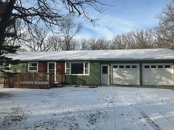 Nestled in the trees on .95 Acre lot this Rambler with 3+ bedrooms, 1 3/4 baths has potential to make it your own! Full basement is poured concrete and is partially finished with family room, another room used as a bedroom (non-egress), utility and 3/4 bath. Attached two stall garage, rural water & sewer. Well for outside watering. Check it out!