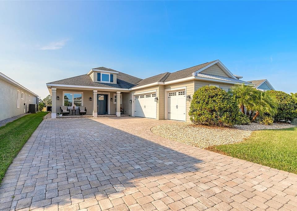 Welcome to 2929 Bella Flore, a meticulously maintained, move-in ready home nestled in a gated golf course community. This stunning 3 bedroom, 3-bath 3 car garage residence features a spacious open layout with wood tile throughout the main living areas, soaring 16-foot ceilings in the foyer, and 12-foot ceilings in the primary living spaces. The chef’s kitchen boasts white cabinetry, granite countertops, and overlooks the expansive living area. The primary suite is a luxurious retreat with a tray ceiling, double sinks, a walk-in shower, and a walk-in closet. The two additional bedrooms both feature their own private bath. Enjoy Florida living at its finest with a screened heated pool, a spacious lanai overlooking the 18th fairway. Additional features include 8-foot doors, a mini split AC system in garage, a spacious laundry room with desk area, and lush, manicured landscaping.