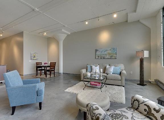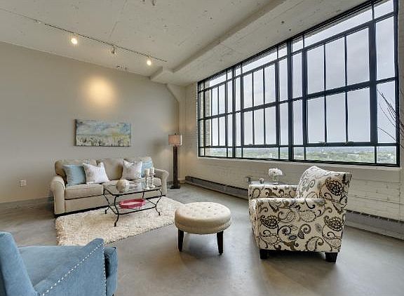 True loft architecture! Exposed brick, high ceilings, polished concrete flrs, 2 garage stalls & stunning 10th flr views! Granite kitchen -custom cabinets, SS apps & movable island! Key card activates lrg elevator to check out 9th flr theater room, 10th flr gym, and 14th flr rooftop lounge & outside terrace. Global Market on 1st flr! HOA fees include heating & AC, Satellite TV package, 2 heated parking stalls & standard items. Pets welcome! Greenway Trail across street! Show unit 1102 as well!, Directions Lake Street East to 10th Ave S, north to parking ramp across from Midtown Exchange Global Market.