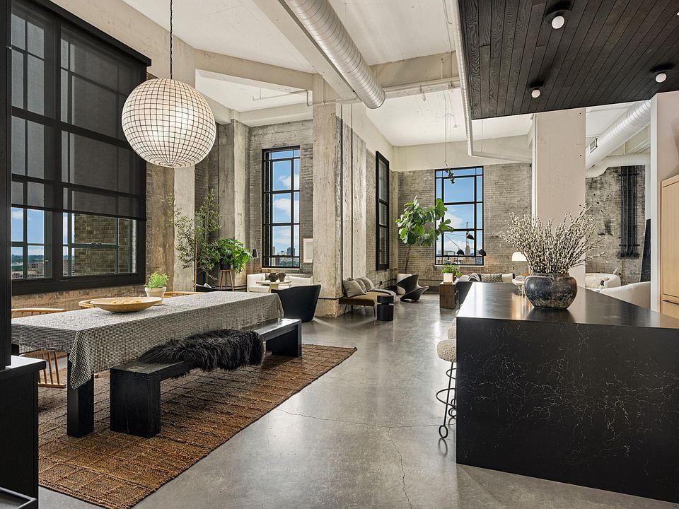 Live a fabulous lifestyle in this massive penthouse which embraces the entire 14th floor of the Midtown Exchange Building. This stunning Condo includes 4 parking stalls and boasts true loft architecture. Magnificent ceilings, exposed brick, heated concrete floors, a private elevator entrance & easy rooftop access. The open kitchen features Cambria counters with waterfall edge, custom white oak cabinetry, an expansive island & Thermador appliances. Tall dramatic windows offer breathtaking panoramic views of Minneapolis. Amenities include a fitness center, media room, and party room with rooftop terrace. This pet & bike-friendly building neighbors the Midtown Greenway Trail & is self-sufficient with the Global Market, restaurants, grocery store, medical clinic, DMV and so much more. Live your best life!