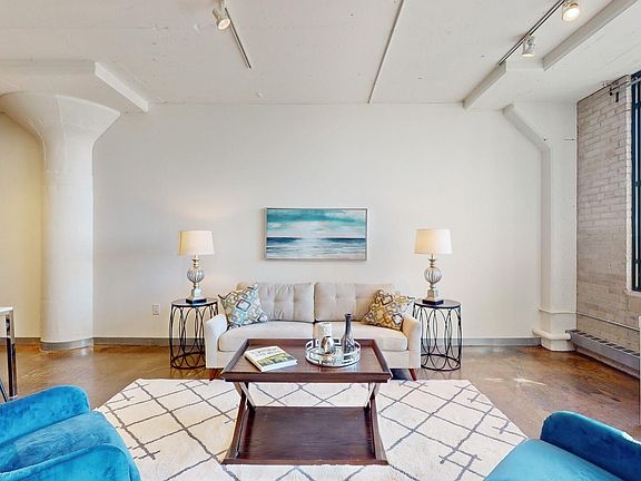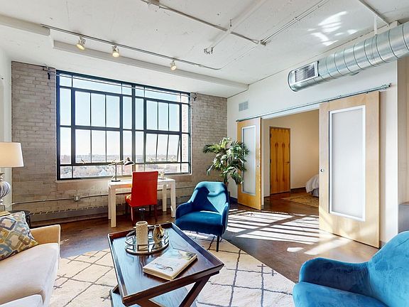 The Chicago Condos, situated above the Midtown Exchange in the historic Sears Roebuck building, offer breathtaking views and bright spaces from the tallest building for miles around. This 9th-floor loft boasts beautiful acid-washed floors, fresh paint, tall ceilings, exposed brick, a walk-in closet, a movable kitchen island, in-unit laundry, and a storage unit, along with underground parking spaces that have the option to include an electric charger. Building amenities are impressive and include a theater/media room (located across the hall from 910), a gym, a rooftop community room, and a patio with a grill, seating, and planter boxes. The Midtown Global Market provides a diverse array of restaurants, shops, and entertainment. Additionally, the Midtown Greenway trail is conveniently located at the end of the block, and Powderhorn Park is just two blocks south. Enjoy 24-hour security, one-level living, easy access to freeways and public transportation, and a pet-friendly environment.
