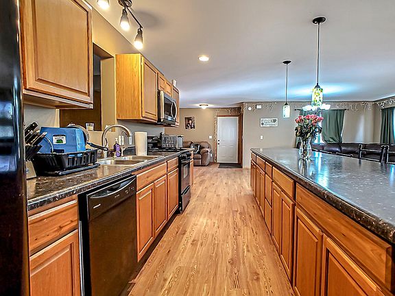 Looking for an open floor plan, 3 bedrooms, 2 bathrooms, main floor laundry and an attached garage? Well here it is with a bonus! on almost 4 acres, but still close to the amenities in town, is this home boasting over 2,000 square feet, natural gas heating, central air, and the efficiency of a private water and sewer. There is also plenty of storage with an additional detached garage on a slab.