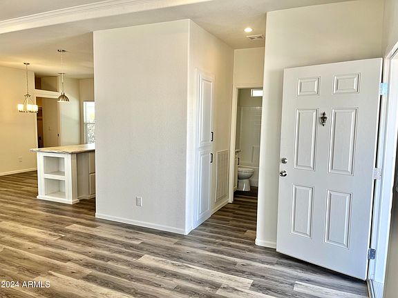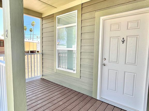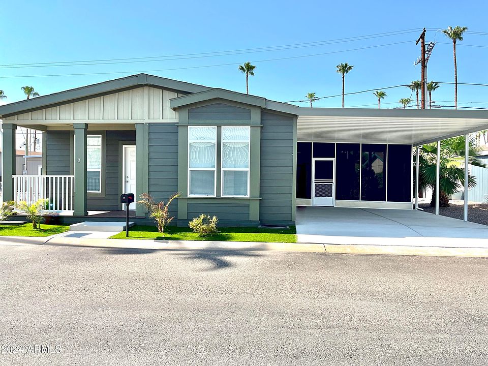Welcome to your new home in Palm Gardens! One of the premiere 55+ communities in Mesa and boasts some of the best amenities and low monthly lot rents. Step into your Brand-New Champion home compete with 2 bedrooms, 2 baths and a spacious split floor plan. This home features a open and bright kitchen with high white cabinets and stainless-steel appliances and laminate countertops. This home has a walk-in pantry within the laundry room with enough space to house all your snacks and treats. Laminate flooring throughout the homes' interior keeps it easy to maintain! The master bath shower with its glass doors and chrome rainfall shower head makes for a rejuvenating experience. The community features 2 heated pools and a spa, shuffleboard, pickleball, billiards, and more!
