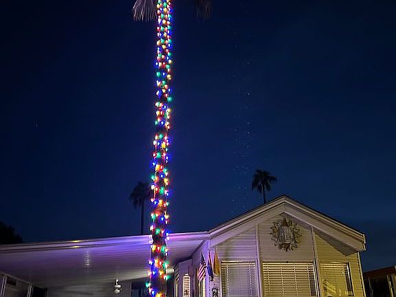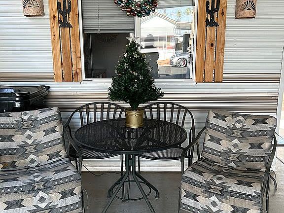 LOW lot rent $550 mo includes water, sewer and trash. Lot 615 in beautiful Palm Garden 55+ resort with two pools, whirlpool and other amenities. Furnished with many many upgrades including a new GE profile dishwasher. Finished 10x10 hobby room with cabinets and TV. New handicap rap and sun screens on west side and faux wood blinds. Call 505-256-8676