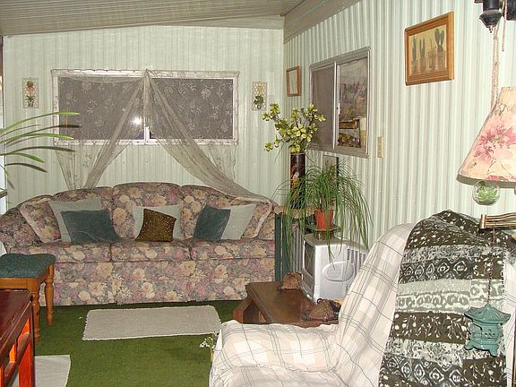 Beautiful, cozy inside and out. Huge lot private very private most of the year with snowbirds on both sides only here November - March. Two storage units outside one attached and the other on the side of the house both with windows and doors with screen make it your work room, craft room etc. Irrigation system in the front for gardeners and on the side room for planting as well. This place inside and out has amazing potential for upgrades or keep as is. If you look online and see one particular address on Broadway with many homes available and none here you have to wonder why. This park is safe and secure and guarded 7 days/week 8-4. Check out the link to Palm Gardens and you can also view how huge the lot is. The price is low right now but I will continue to do updates and the price may be adjusted. Don't miss this opportunity. You won't be disappointed. Trust me I have been out looking as my mother needs to move with me and they only allow a spouse here and there is nothing out there unless you want to settle for a park with nothing compared to this one and or high price due to upgrades but also in a park that has nothing compared to this one.