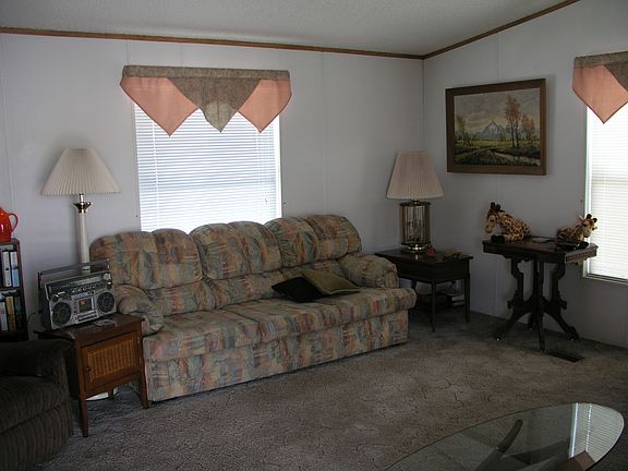 This property is sold. ____________________________________________________________________________________ Will consider any reasonable offer. Come & come try Palm Gardens in the center of Mesa, near to all, establishments, shopping & entertainment. We have six new front deck models vacant & RV storage on site. Activities galore for those that want them. two bedrooms, two baths Well-cared-for mobile home for sale on Lot 7 in Palm Gardens mobile home park (http://www.palmgardensonline.com/). This is a Redman brand Model 314 mobile home with approx. 992 sq. feet. (16' x 64'). 2 Bedrooms, 2 Bathrooms. We plan to sell it furnished (personal items will be removed before sale). Includes shed storage (visible under the awning) that was added later. Washer and dryer included along with kitchen appliances and TV, queen sized bed, dressers, couches, recliners, dining room table, second twin bed. First two months sewer and trash is pre-paid. This is a retirement community mobile home park and park approval is required before purchase (refer to Palm Gardens at the link above or call their office at 1-800-680-3818 for details). There is a ramp to the front door but a single step at the door, so it is almost wheelchair accessible.